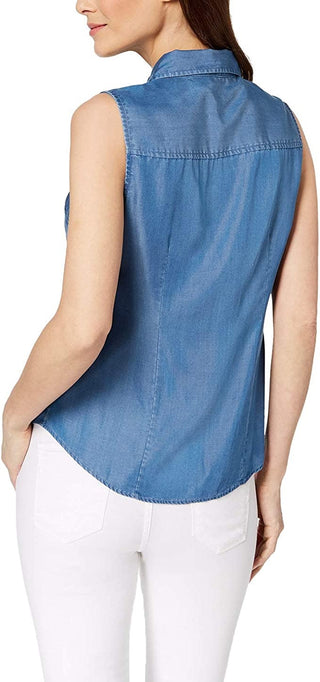 Charter Club Women's Sleeveless Chambray Shirt Blue Size 8