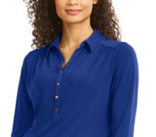 Charter Club Women's Knit Polo Shirt Blue Size XX-Large