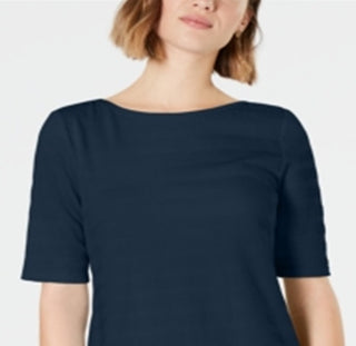 Charter Club Women's Cotton Texture Striped Elbow Sleeve Top Blue Size XX-Large