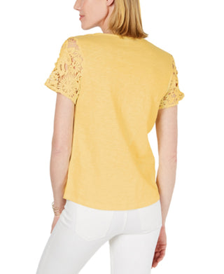 Charter Club Women's Cotton Lace Embellished T-Shirt Yellow Size X-Large