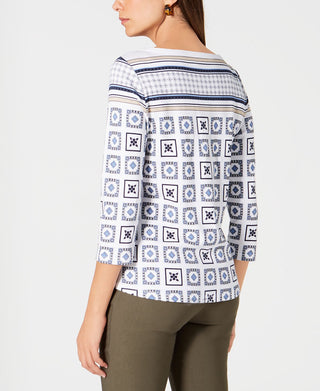 Charter Club Women's New Orleans Boat Cotton Printed Top White Size Medium
