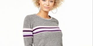 Charter Club Women's Striped Cashmere Sweater Gray Size Medium