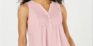 Charter Club Women's Sleeveless Pintuck Blouse Pink Size XX-Large