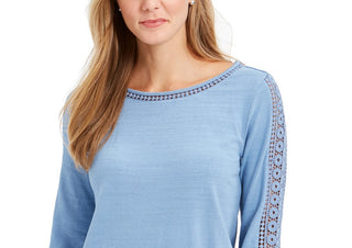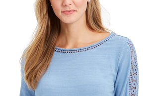 Charter Club Women's Crochet-Inset Top Blue Size Medium