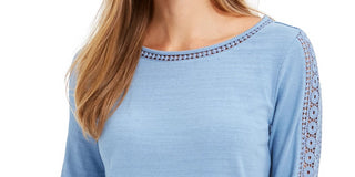 Charter Club Women's Crochet Inset Top Navy Size XX-Large