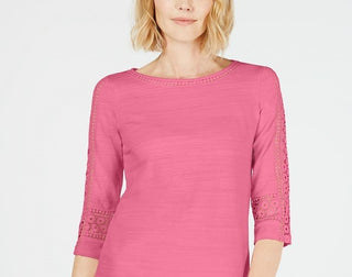 Charter Club Women's Crochet-Inset Top Pink Size XX-Large