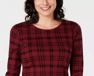 Charter Club Women's Cotton Plaid Top Red Size Medium