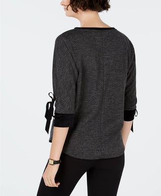 Charter Club Women's Cotton Velvet Trim Lace Up Top Black Size X-Small