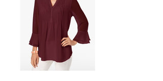 Charter Club Women's Solid Long Sleeve Keyhole Blouse Top Wine Size Petite Small