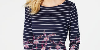 Charter Club Women's Striped Paisley Print Top Blue Size Small