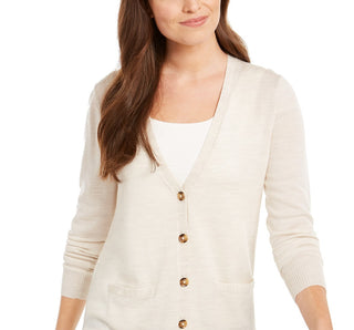 Charter Club Women's Merino Wool V-Neck Cardigan Beige Size Medium