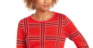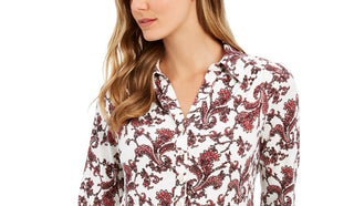 Charter Club Women's Printed Long Sleeve Crew Neck Blouse Top Red Size Petite Small