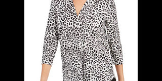 Charter Club Women's Animal Print Pleated V Neck Top White Size Large