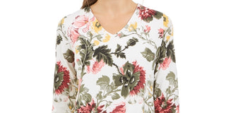 Charter Club Women's Garden Printed V Neck Top White Size Small