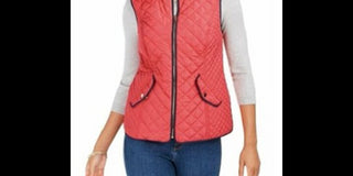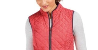 Charter Club Women's Petite Zip-Front Quilted Cotton Vest Red Size Medium