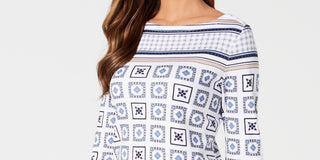 Charter Club Women's New Orleans Boat Cotton Printed Top White Size Small