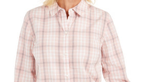 Charter Club Women's Plaid Cotton Button Up Shirt Pink Size Petite Small-Medium