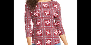 Charter Club Women's Printed 3/4 Sleeve Cotton Top Red Size Petite X-Large