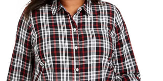 Charter Club Women's Ilanna Cotton Plaid Button Up Shirt Black Size 3X
