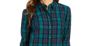 Charter Club Women's Cotton Plaid Shirt Black Size X-Small