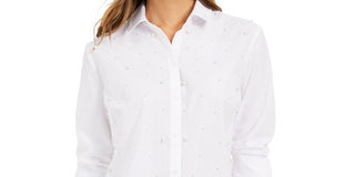 Charter Club Women's Faux Pearl Shirt White Size Large