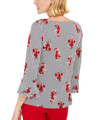 Charter Club Women's Printed Ruffled-Sleeve Top Gray Size XX-Large