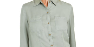 Charter Club Women's Woven Solid Tencel Shirt Green Size XX-Large