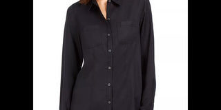Charter Club Women's Woven Solid Tencel Shirt Black Size Extra Large