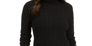Charter Club Women's Petite Cable-Knit Turtleneck Sweater Black Size Petite Small