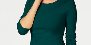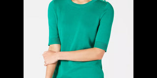 Charter Club Women's Petite Elbow-Sleeve Sweater Green Size PXL