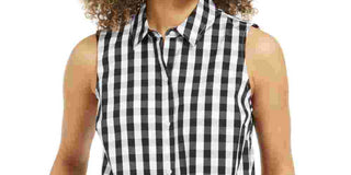 Charter Club Women's Gingham-Print Tie-Hem Shirt Black Size 10