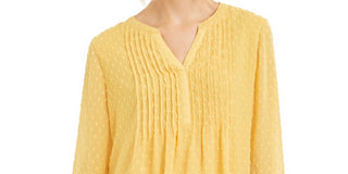 Charter Club Women's Petite Double-Ruffle Textured Pintuck Top Gold Size PL