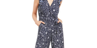 Charter Club Women's Printed Belted Jumpsuit Blue Size 12