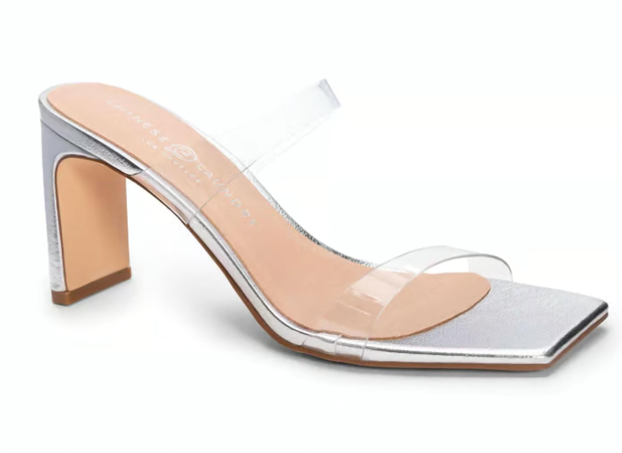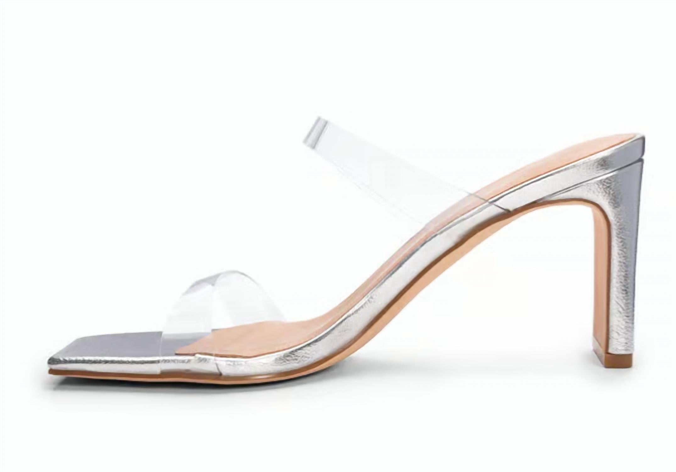Don't be deceived, these heels are comfy as can be.This slip-on sandal features a square toe and a double strap upper with a thin block heel. Made from man-made materials, it has a polyurethane sole and a 3.5-inch heel, designed for a dress-casual look.