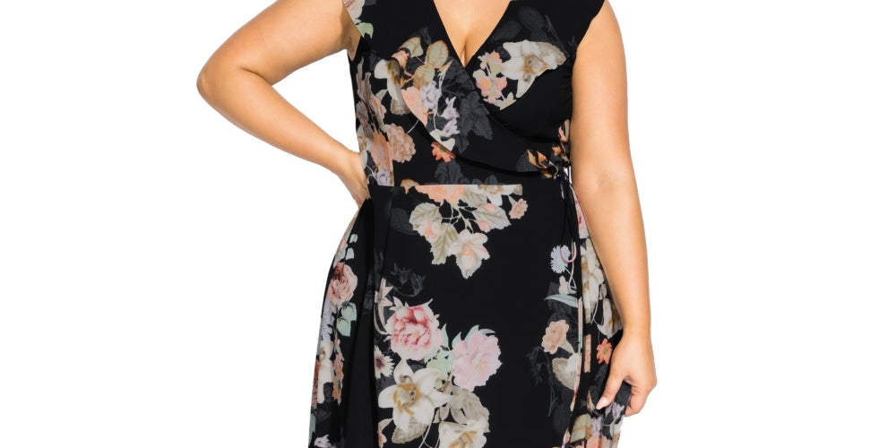 City Chic Women's Trendy Plus High Low Maxi Wrap Dress Black Size Petite Small