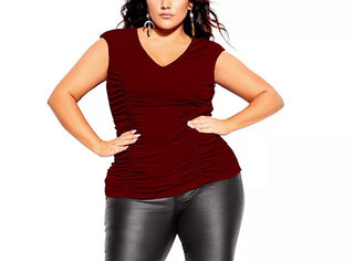 City Chic Women's Trendy Plus Size Ruched Top Red Size Small Petite