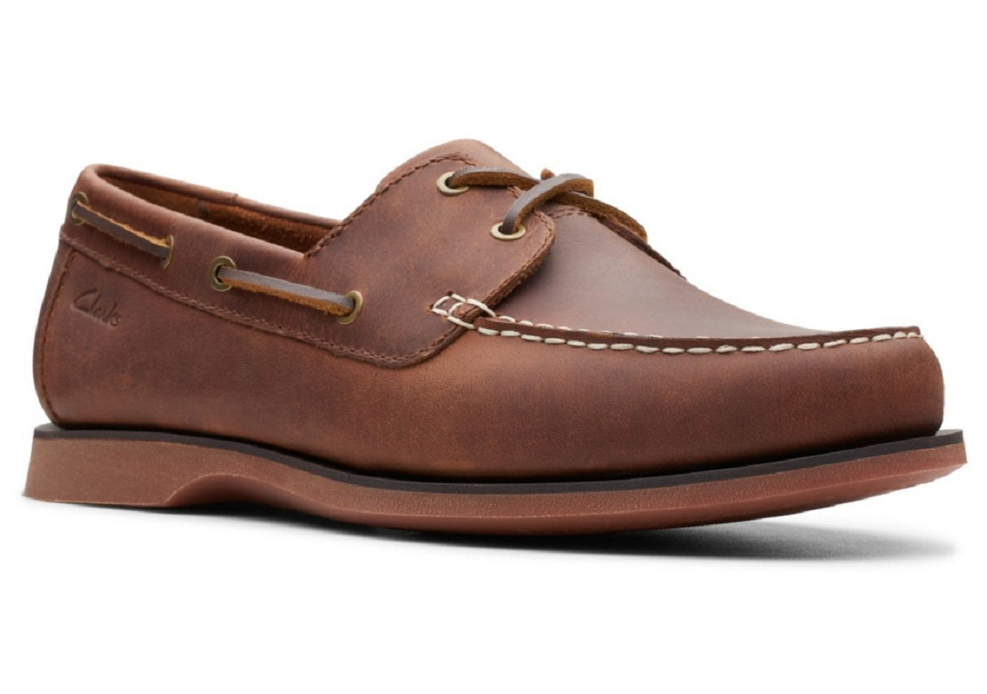 Clarks has taken a classic men's deck shoe and updated it with premium materials| An unfussy lace fastening system is understated while stitching| moccasin construction and leather trims add further nautical touches