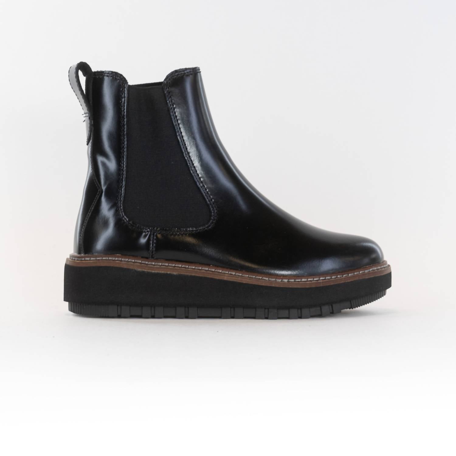 Say hello to the perfect, most versatile boot. The ankle height makes this style easily transition from day to night. Wear them with your favorite skinny jeans and tee for a more laid back look, or pair them with your favorite mini dress and jacket for a night out on the town.Premium Black Leather Upper. Leather Contour Cushion Footbed. Chunky Lugged Rubber Outsole. Heel Height: 50mm.