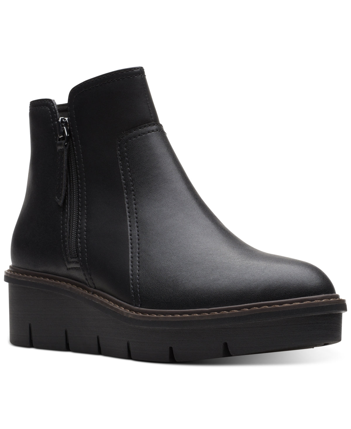 Chunky lug platforms and a wedge lift the Airabell booties by Clarks to the next level in comfort|