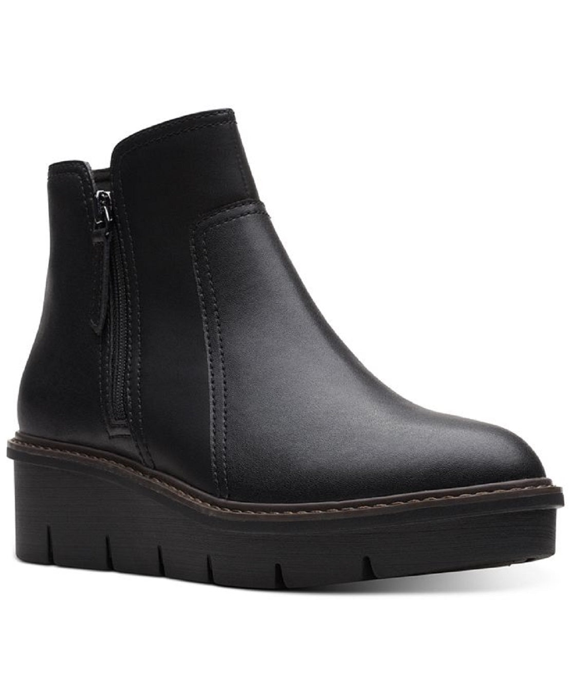 2 wedge heel|Round-toe wedge booties with inner ankle zipper closure|Cushioned insole for added comfort; waterproof finish|Ultimate Comfort foam footbed combines with heel and arch support for added cushioning; airy sole with flex grooves helps absorb the impact of every step to keep movement light and natural|Leather upper; fabric lining; manmade sole|Imported