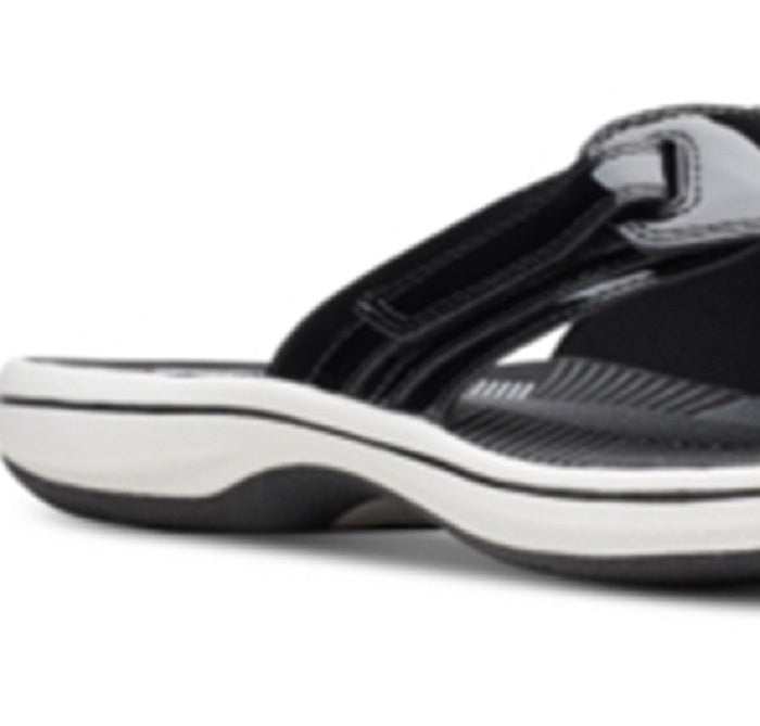 Add subtle height and all-day comfort to warm-weather looks in the sporty and stylish Brinkley Sail flip-flop sandals from Clarks Collection.| 1-1/2 heel; 1/2 platform| Round-toe slip-on thong flip-flop sandals with stay-put closure| Cushion Soft and Cloudsteppers technologies with cushioned insole for added comfort| Upper/sole; manmade| Imported