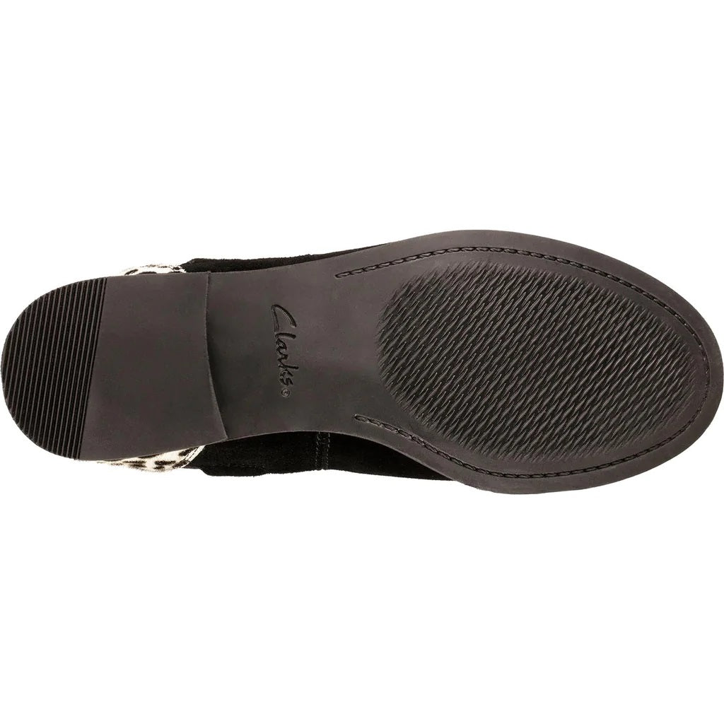 Leather upper with leopard print accents *Ankle-high shaft *Pull-on style *Cushioned footbed *1-1/4" tailored hee