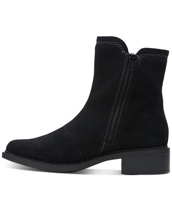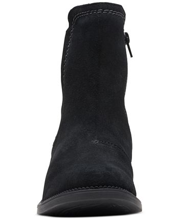 1-1/2 block heel|Round-toe booties with inner ankle zipper closure|Cushioned insole for added comfort; grippy sole for added traction|Suede upper; fabric lining; manmade sole|Imported