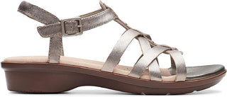 Clarks Women's Pewter Metallic Loomis Katey Leather Sandal Gray Size 8.5 M