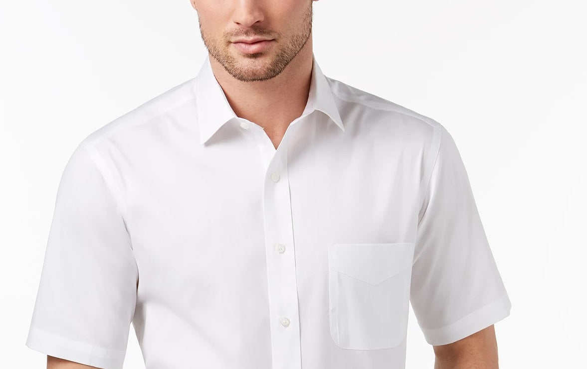 A classic fit, also known as a regular fit, offers a generous cut throughout the chest and waist for overall ease; features standard armholes and fuller sleeves|Wrinkle-resistant fabric requires little ironing|Comfort Collar|Pocket at left chest|The Spread Collar Dress Shirt featured on The It List|All cotton|Machine washable
