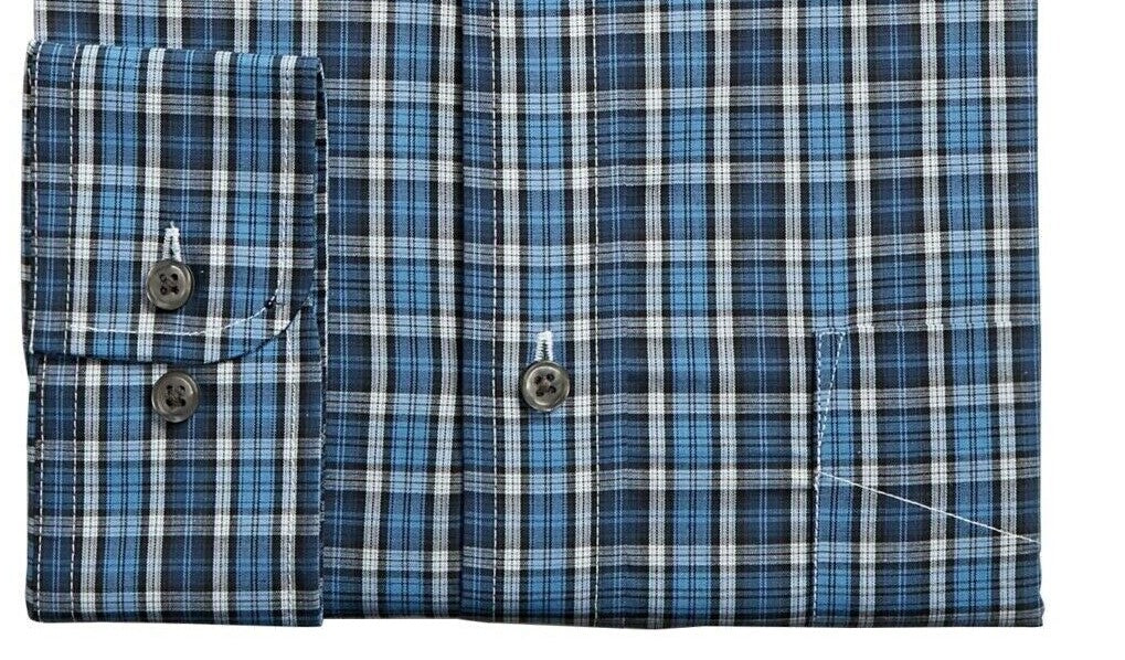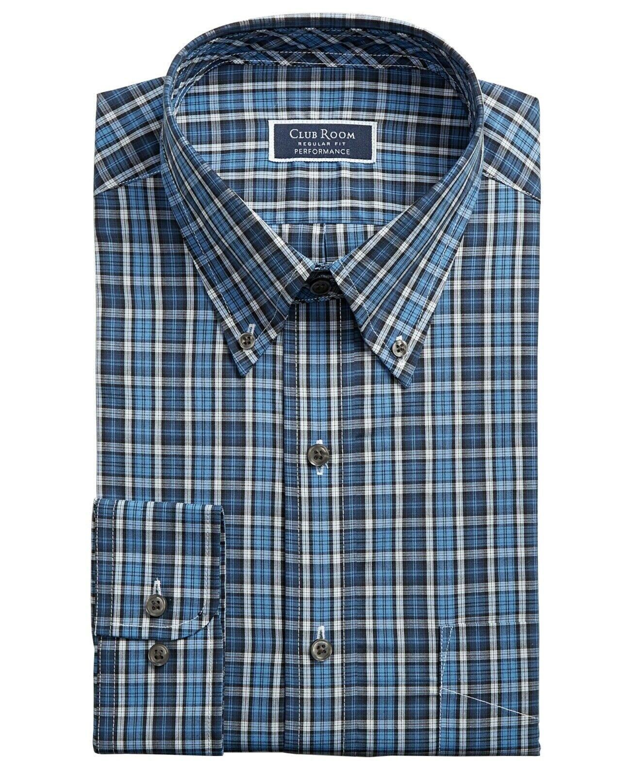 Club Room Men's Classic Fit Stretch Blackwatch Tartan Dress Shirt Navy Size 17-32-33
