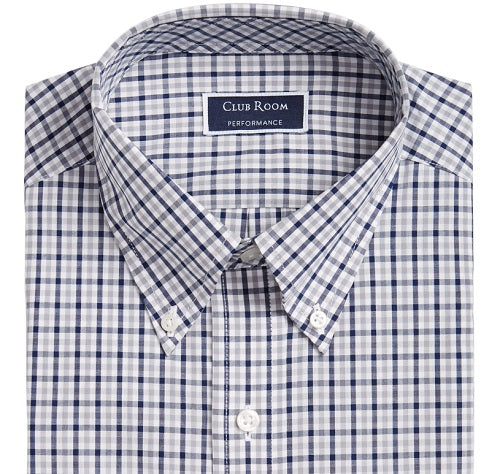Club Room Mens Dress Shirts Green Stretch Wrinkle-Resistant Grey 17 1/2