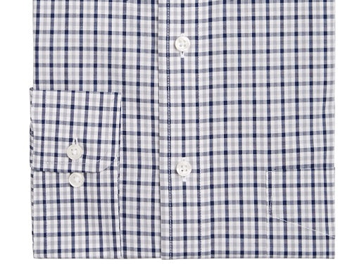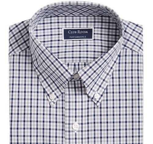 Club Room Mens Dress Shirt Blue Plaid Printed Button Grey 18 1/2