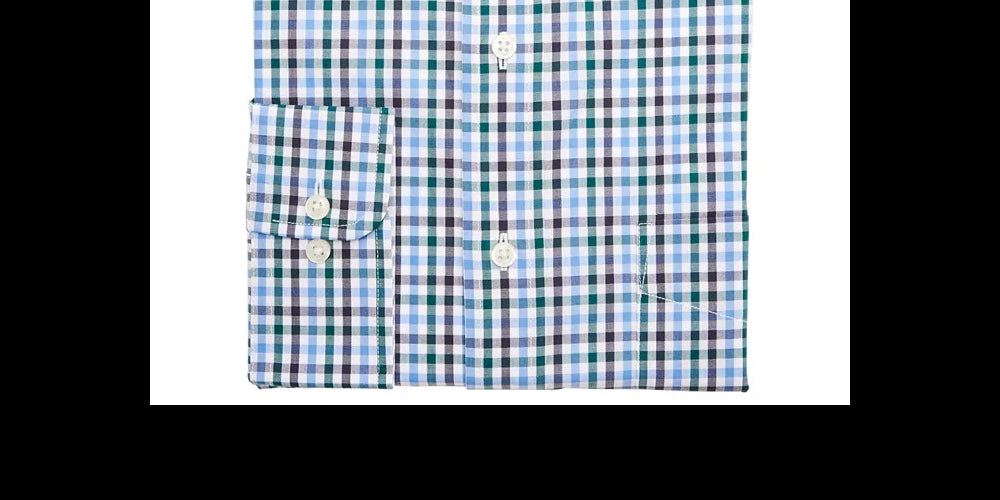 A classic fit, also known as a regular fit, offers a generous cut throughout the chest and waist for overall ease; features standard armholes and fuller sleeves|Spread comfort collar|Two-button cuffs|Gingham check pattern; patch pocket at left chest|Stretch performance; wrinkle-resistant fabric requires little ironing|100% cotton