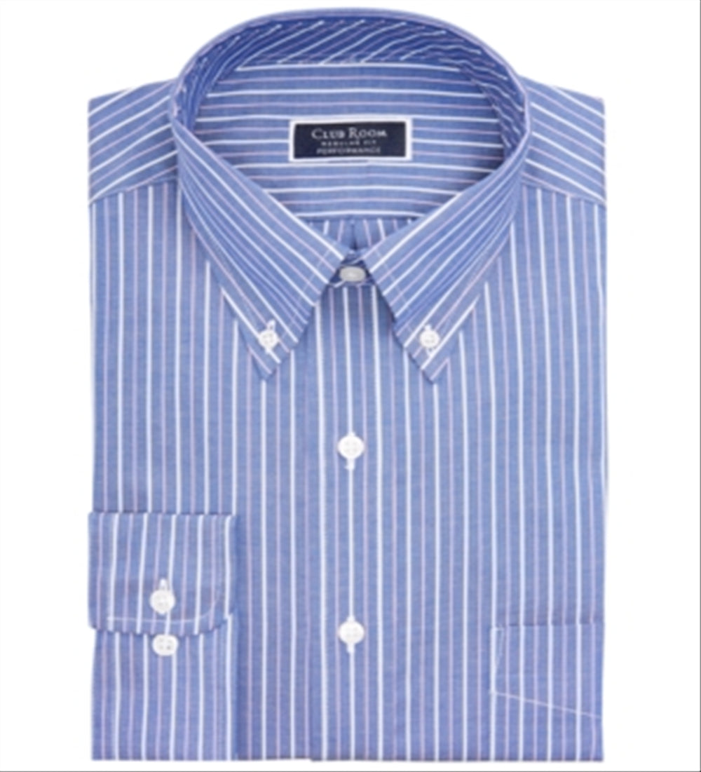 A button-down collar and brisk-tone stripe pattern imbue this soft| cotton Club Room dress shirt with a classic meets casual look that is complemented by its comfortable feel.| A classic fit| also known as a regular fit| offers a generous cut throughout the chest and waist for overall ease; features standard armholes and fuller sleeves| Wrinkle-resistant fabric requires little ironing| Comfort Collar